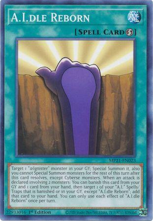Target 1 "@Ignister" monster in your GY; Special Summon it, also you cannot Special Summon monsters for the rest of this turn after this card resolves, except Cyberse monsters. When an attack is declared involving 2 monsters: You can banish this card from your GY and 1 card from your hand, then target 1 of your "A.I." Spells/Traps that is banished or in your GY, except "A.I.dle Reborn"; add that card to your hand. You can only use each effect of "A.I.dle Reborn" once per turn.