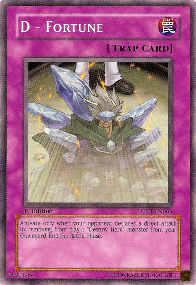 Activate only when your opponent declares a direct attack by removing from play 1 "Destiny Hero" monster from your Graveyard. End the Battle Phase.